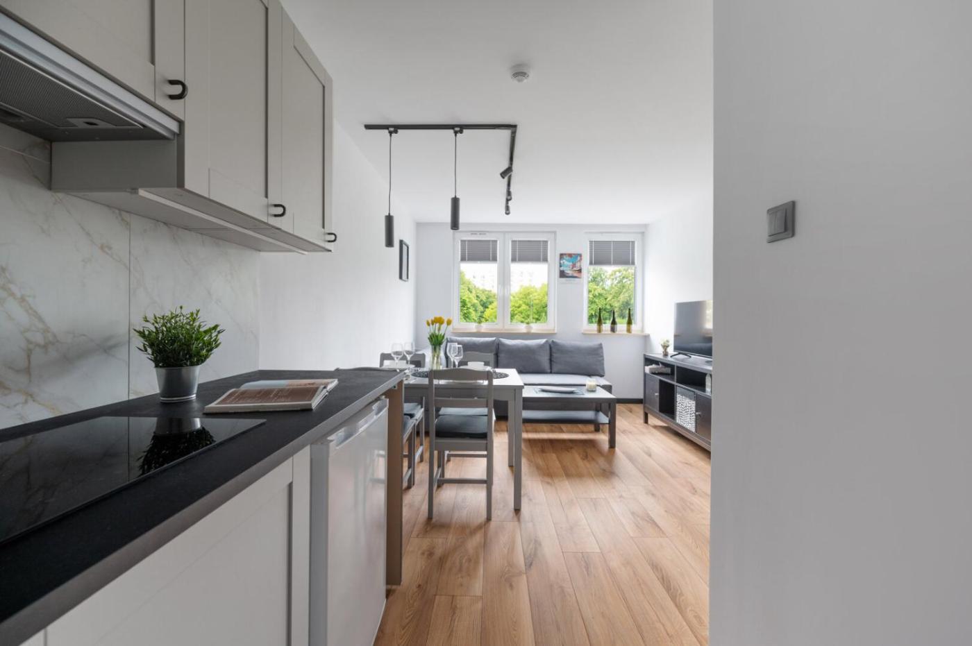 Apartament. This apartment consists of 1 living room, 1 separate bedroom and 1 bathroom with a walk-in shower and a hairdryer. The well-fitted kitchen features a stovetop, a refrigerator, a dishwasher and a tea and coffee maker. This apartment has a dining area, flat-screen TV, a quiet street view, as well as chocolate for guests. The unit offers 2 beds. Apartament - 4 osobowy. Powierzchnia pokoju ok.: 31 mkw.