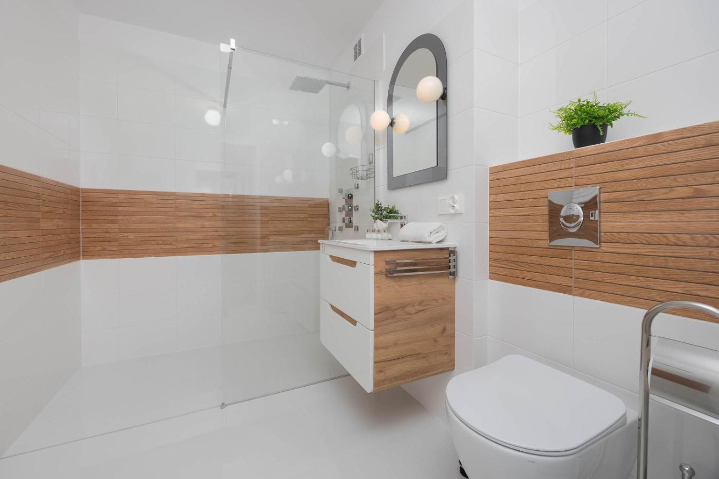 Apartament. This spacious apartment consists of 1 living room, 1 separate bedroom and 1 bathroom with a shower and free toiletries. Guests can make meals in the kitchenette that is equipped with a stovetop, a refrigerator, a dishwasher and kitchenware. The air-conditioned apartment provides a flat-screen TV with streaming services, a washing machine, a private entrance, a tea and coffee maker as well as city views. The unit offers 3 beds. Apartament - 5 osobowy. Powierzchnia pokoju ok.: 63 mkw.